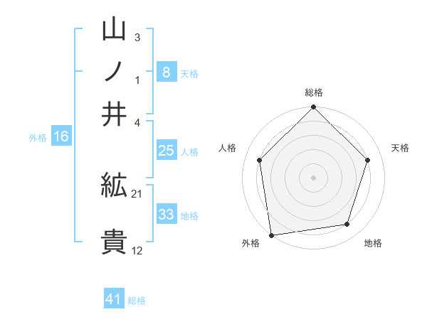 山ノ井 絋貴さんの総格は41画の5点