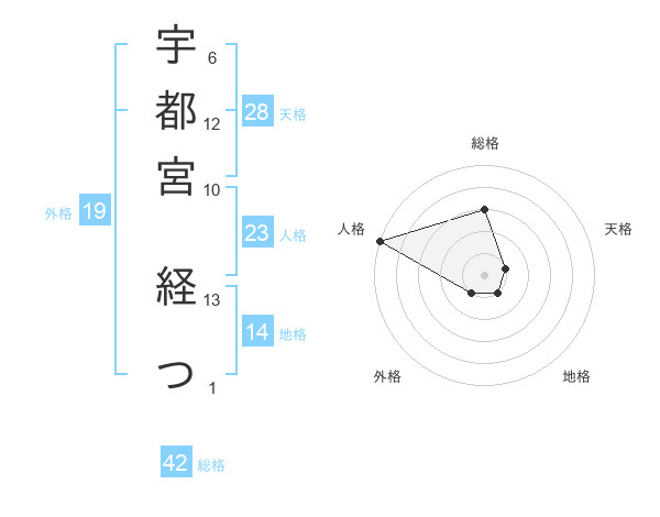 宇都宮 経つさんを姓名の画数から五運を鑑定