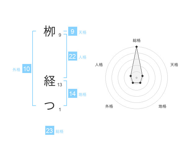 栁 経つさんの総格は23画の5点!