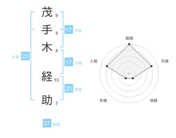 茂手木 経助さんを姓名の画数から五運を鑑定