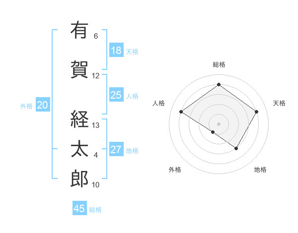 有賀 経太郎さんの総格は45画の4点!