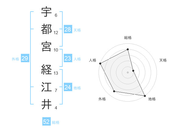 宇都宮 経江井さんを姓名の画数から五運を鑑定