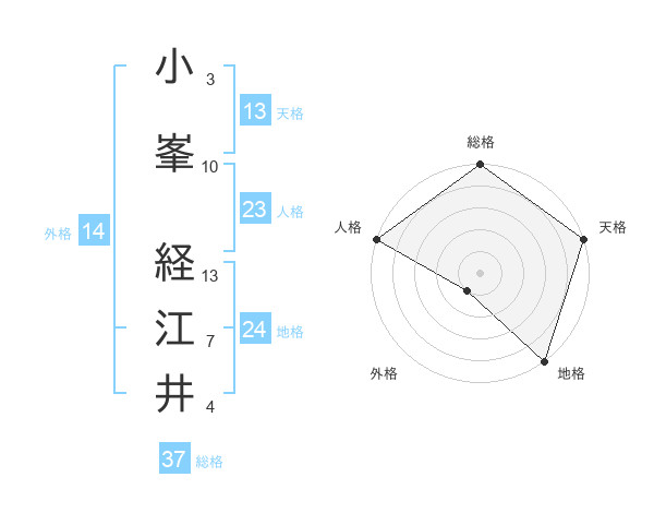 小峯 経江井さんの総格は37画の5点!