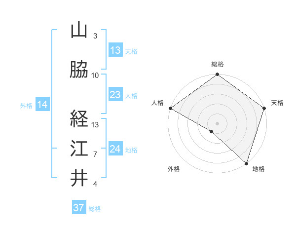 山脇 経江井さんの総格は37画の5点