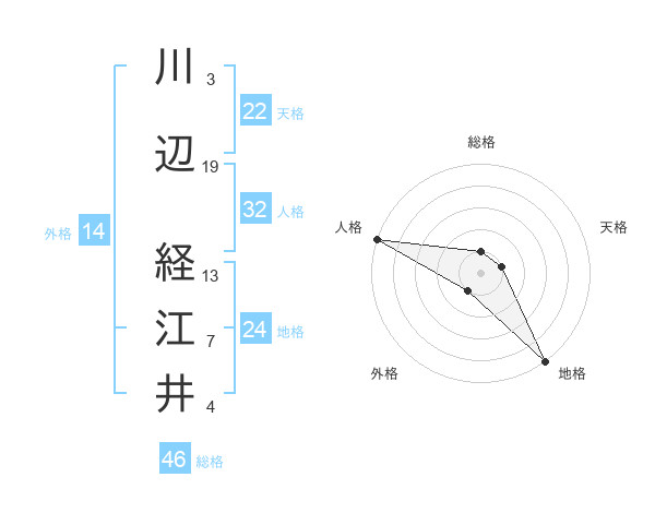 川辺 経江井さんの総格は46画の1点!