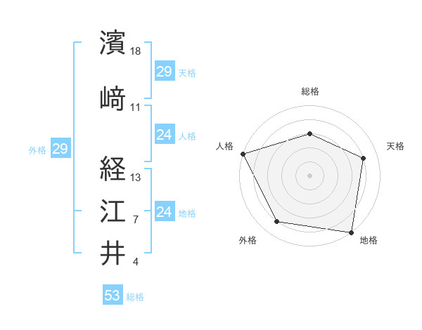 濱﨑 経江井さんを姓名の画数から五運を鑑定