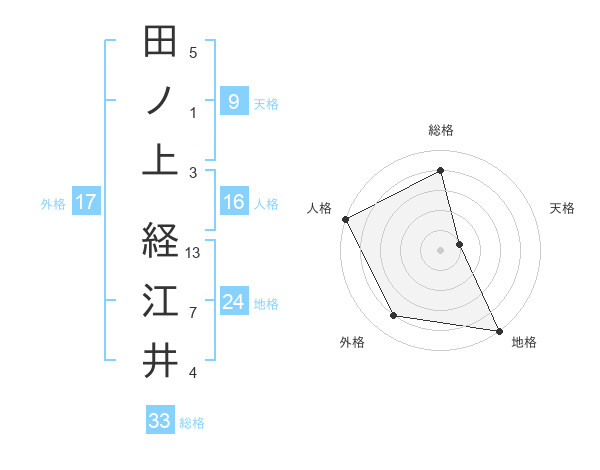田ノ上 経江井さんを姓名の画数から五運を鑑定
