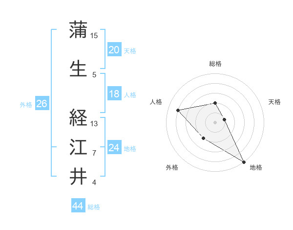 蒲生 経江井さんを姓名の画数から五運を鑑定