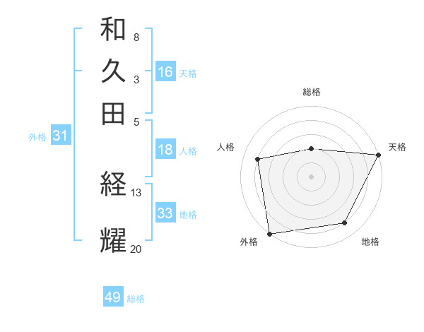 和久田 経耀さんを姓名の画数から五運を鑑定