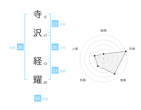 寺沢 経耀さんを姓名の画数から五運を鑑定