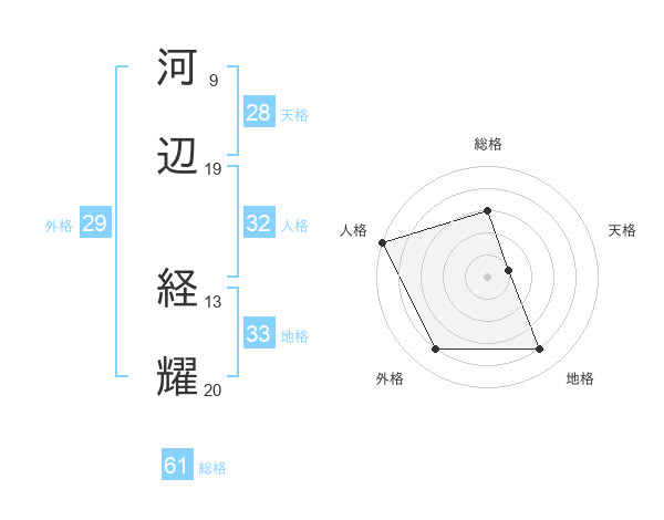 河辺 経耀さんの総格は61画の3点!