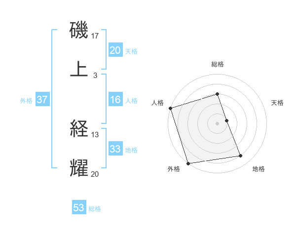磯上 経耀さんを姓名の画数から五運を鑑定