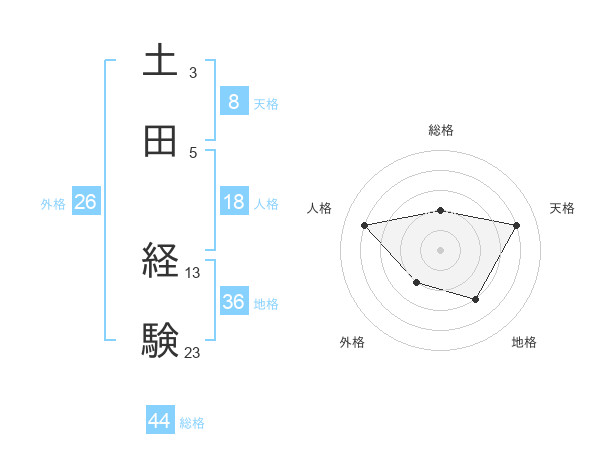 土田 経験さんの総格は44画の2点!