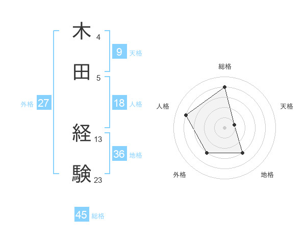 木田 経験さんの総格は45画の4点!
