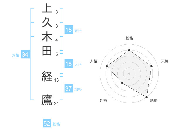 上久木田 経鷹さんを姓名の画数から五運を鑑定