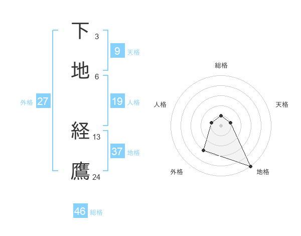 下地 経鷹さんを姓名の画数から五運を鑑定