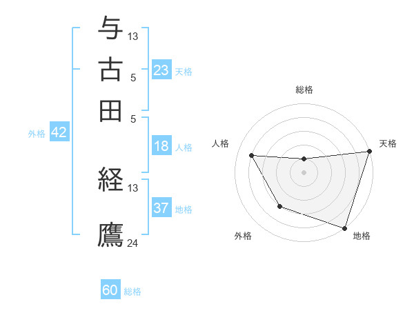 与古田 経鷹さんの総格は60画の1点!