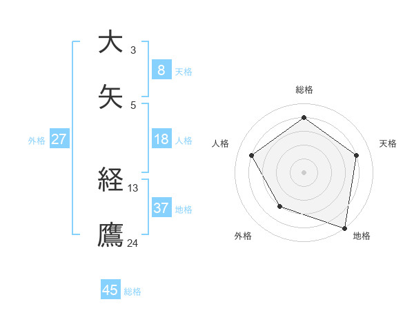 大矢 経鷹さんの総格は45画の4点!