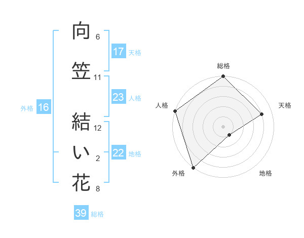 向笠 結い花さんの総格は39画の5点!