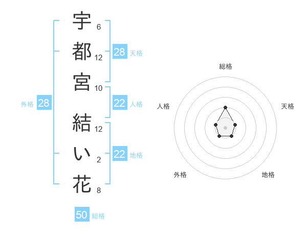 宇都宮 結い花さんを姓名の画数から五運を鑑定