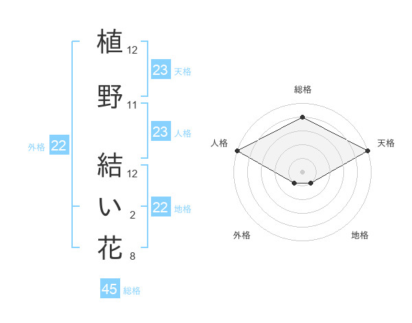 植野 結い花さんの総格は45画の4点!