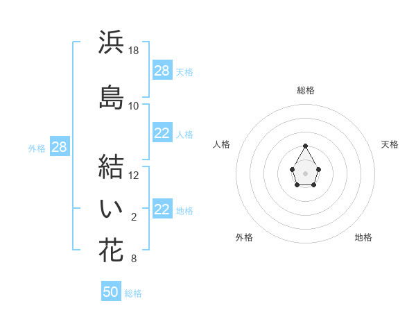 浜島 結い花さんを姓名の画数から五運を鑑定