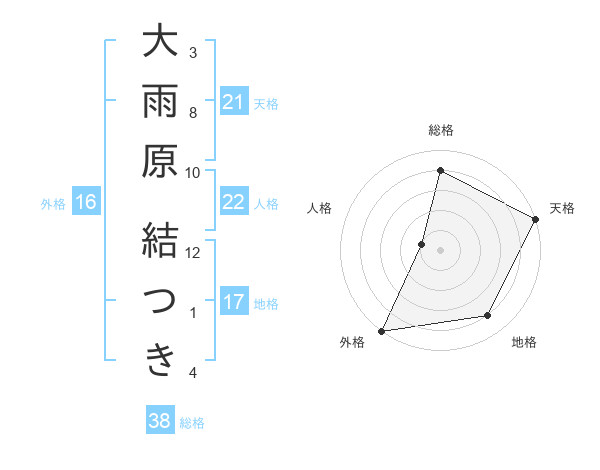 大雨原 結つきさんを姓名の画数から五運を鑑定