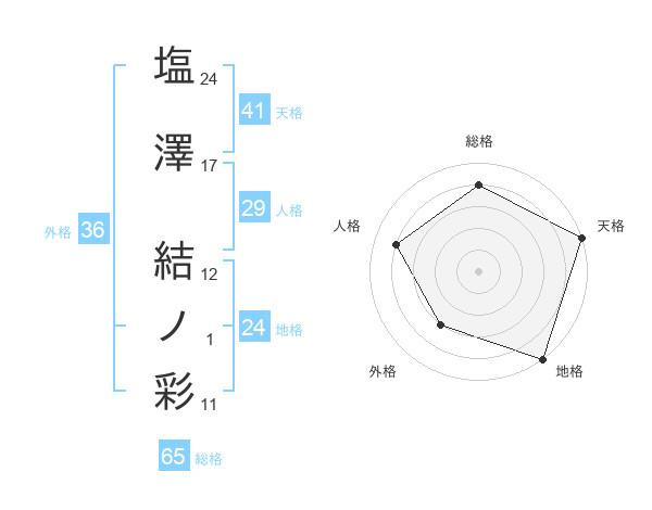 塩澤 結ノ彩さんの地格は24画の5点!