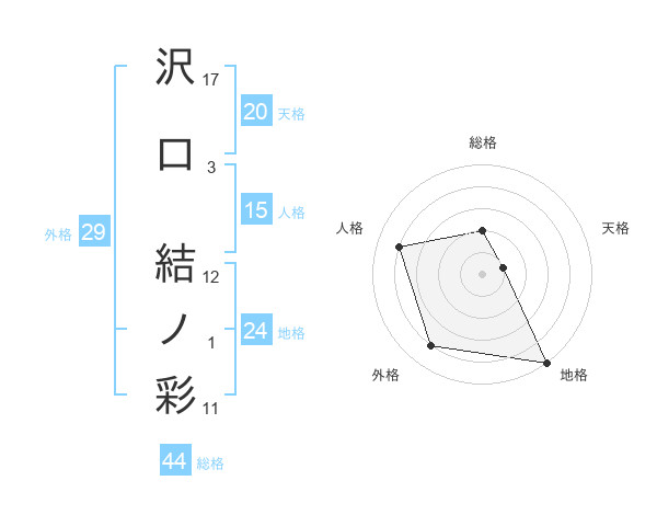 沢口 結ノ彩さんを姓名の画数から五運を鑑定