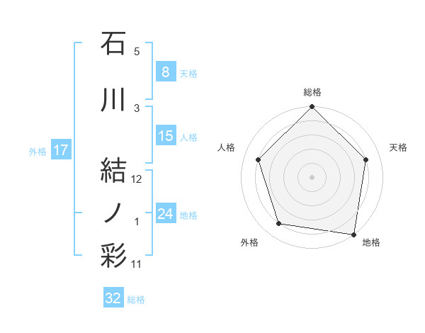 石川 結ノ彩さんを姓名の画数から五運を鑑定