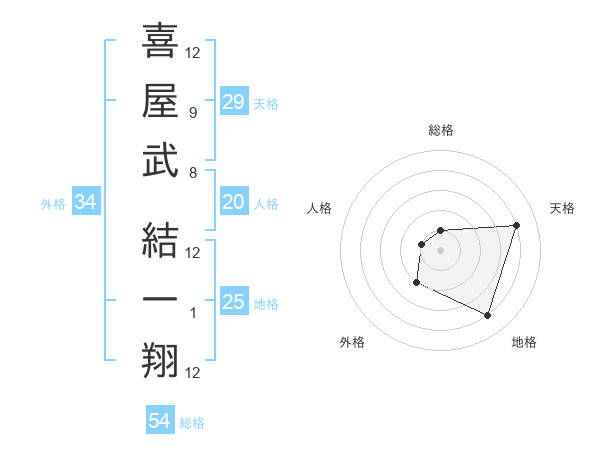 喜屋武 結一翔さんの外格は34画の2点!