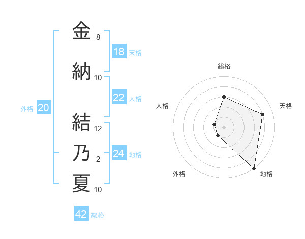 金納 結乃夏さんを姓名の画数から五運を鑑定