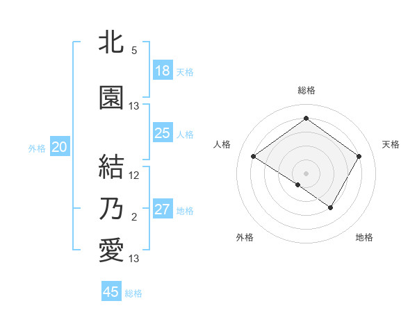 北園 結乃愛さんを姓名の画数から五運を鑑定