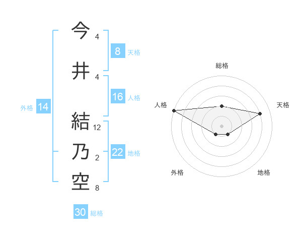 今井 結乃空さんの地格は22画の1点!