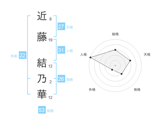 近藤 結乃華さんを姓名の画数から五運を鑑定