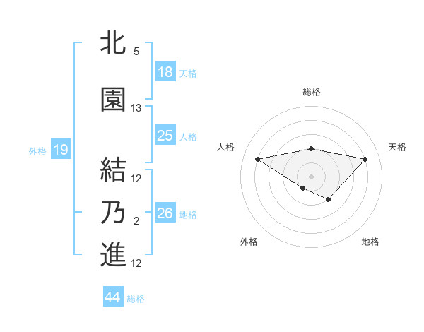 北園 結乃進さんを姓名の画数から五運を鑑定