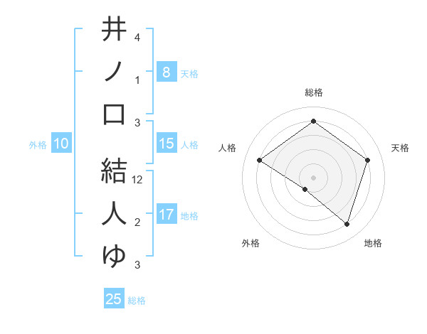 井ノ口 結人ゆさんを姓名の画数から五運を鑑定