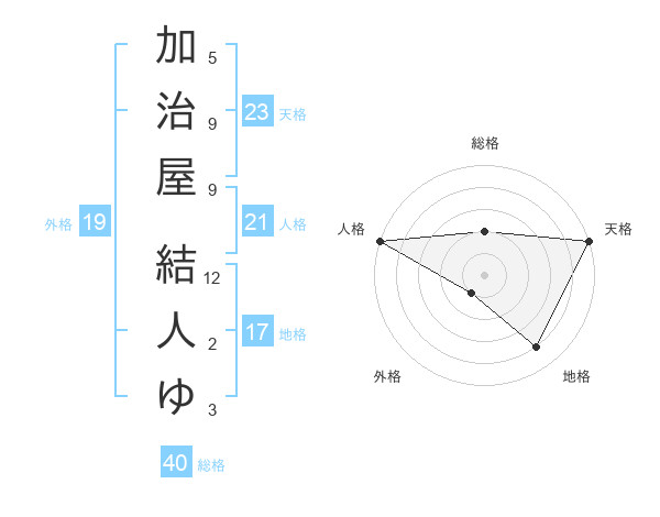 加治屋 結人ゆさんの天格は23画の5点