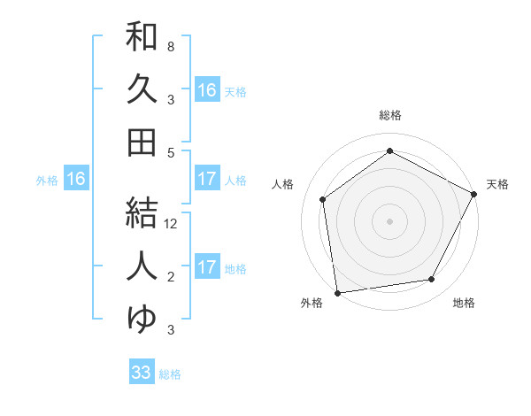 和久田 結人ゆさんを姓名の画数から五運を鑑定