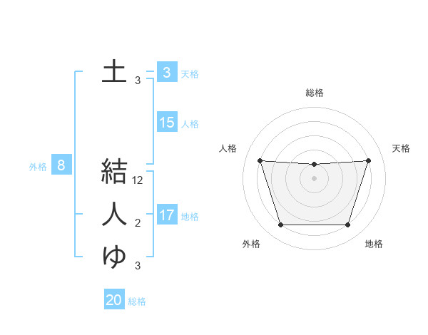 土 結人ゆさんを姓名の画数から五運を鑑定