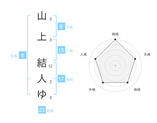 山上 結人ゆさんを姓名の画数から五運を鑑定