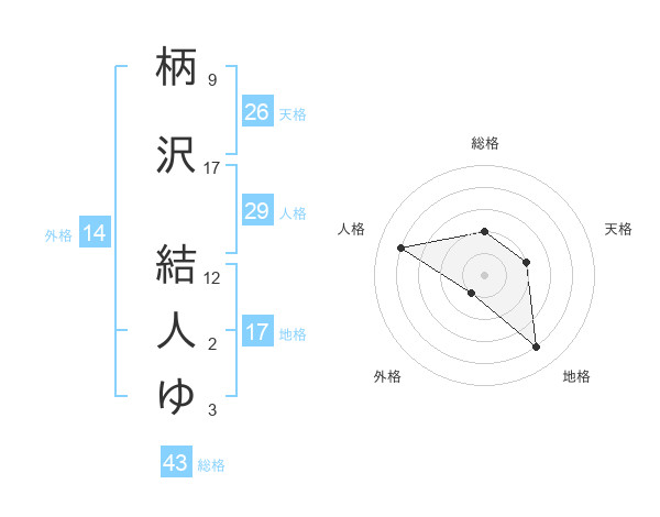 柄沢 結人ゆさんを姓名の画数から五運を鑑定