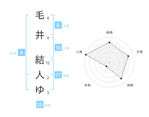 毛井 結人ゆさんの人格は16画の5点!