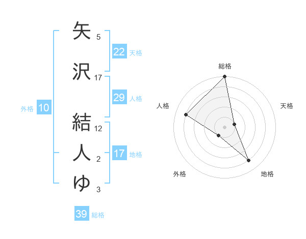 矢沢 結人ゆさんを姓名の画数から五運を鑑定