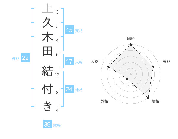 上久木田 結付きさんの総格は39画の5点!