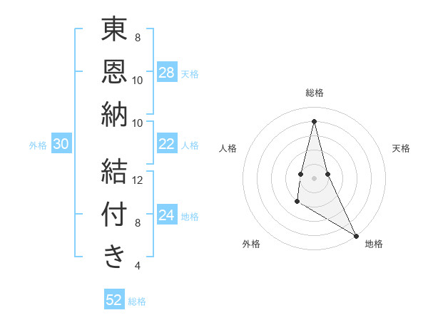 東恩納 結付きさんを姓名の画数から五運を鑑定