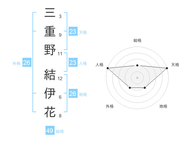 三重野 結伊花さんを姓名の画数から五運を鑑定