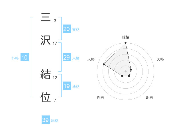三沢 結位さんの総格は39画の5点!