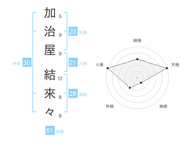 加治屋 結來々さんを姓名の画数から五運を鑑定