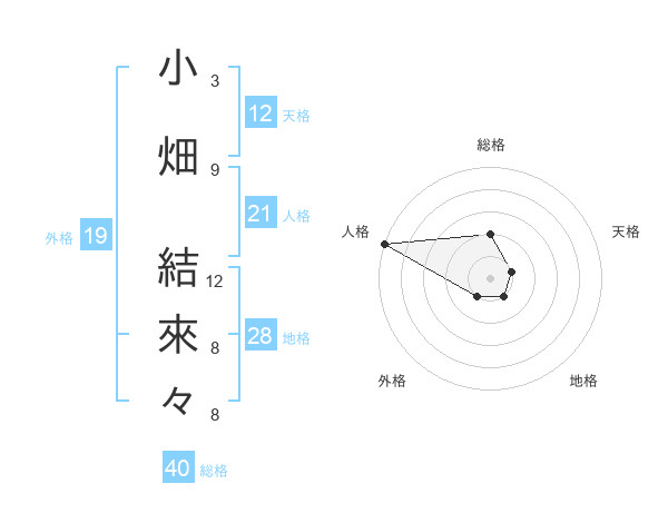 小畑 結來々さんを姓名の画数から五運を鑑定